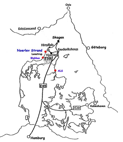 Anfahrt Die Reise zum NØrlev Strand ist leicht und angenehm. Der NØrlev Strand liegt nördlich von LØnstup direkt an der dänischen Nordsee. Von der Bundesgrenze