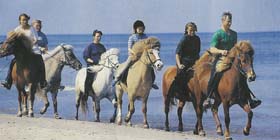 Isländern am Strand und in den Dünen.Die Reitanlage ist