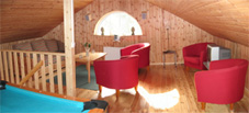 verbunden. Er hat eine breite Fensterfront und einen Ausgang zur Terrasse