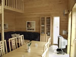 Kamin, Telefon, Stereoradio, Farb-TV, Parabol Schlafräume: 7 Zimmer Küche: 2 komplette Küchen, eine mit Wohnzimmer kombiniert und eine im Wintergarten: El-Herd, Dunstabzug, Mikrowelle, kombinierter Kühl- Gefrierschrank, Kaffeemaschine, Geschirrspüler, Waschmaschine, Wächetrockner. Bad: 3 WC, 3 Duschen, Saunal,Waschmaschine und Trockner Und: Helle freundliche Einrichtung mit Panelwänden und hellen Möbeln in skandinavischem Stil. Elektroheizung (teils als Fußbodenheizung). Überdachte Terrasse, Grill. |